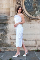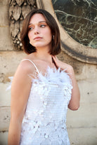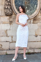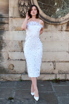 Beyaz Payetli Otrişli Midi Boy Elbise Ariel
