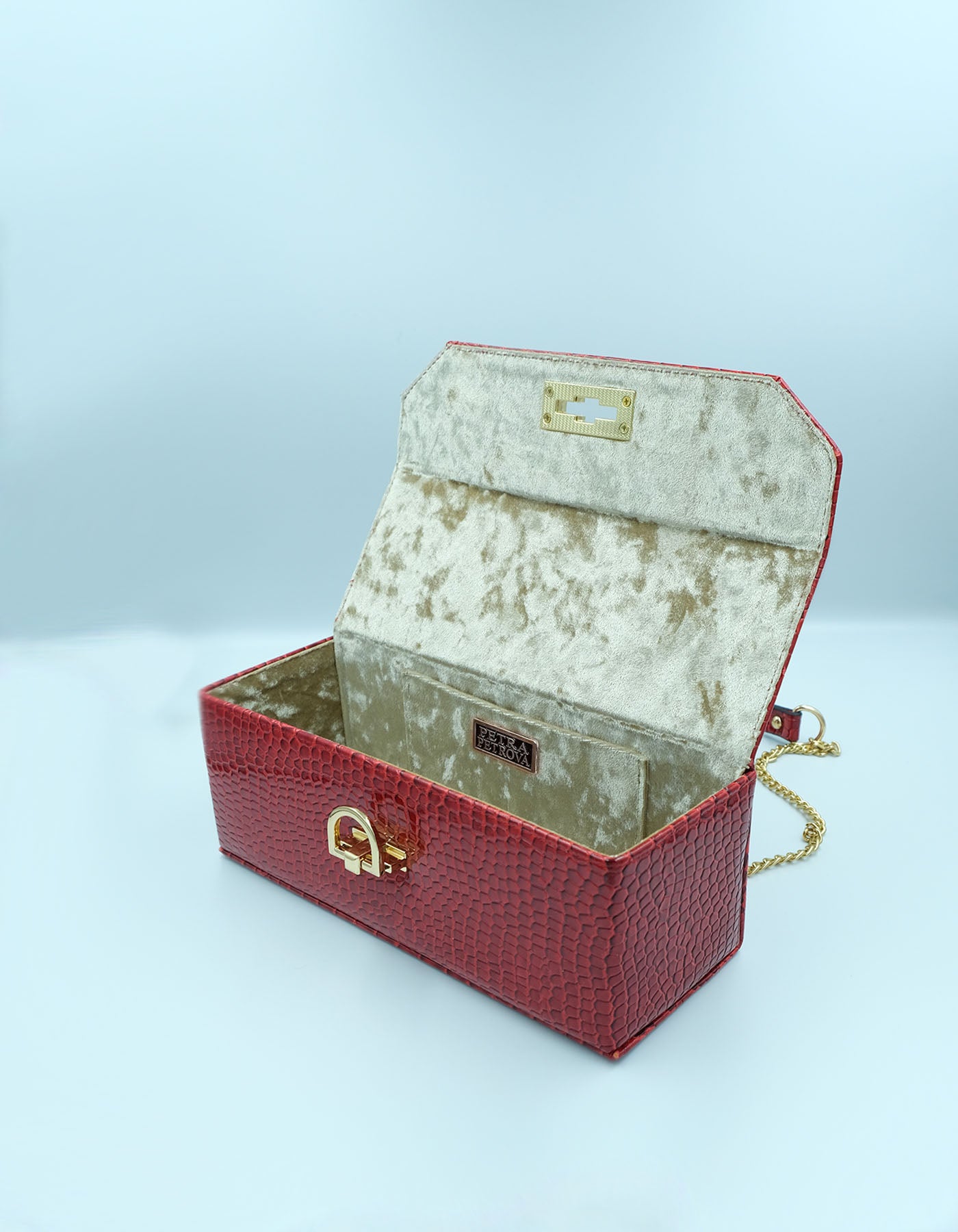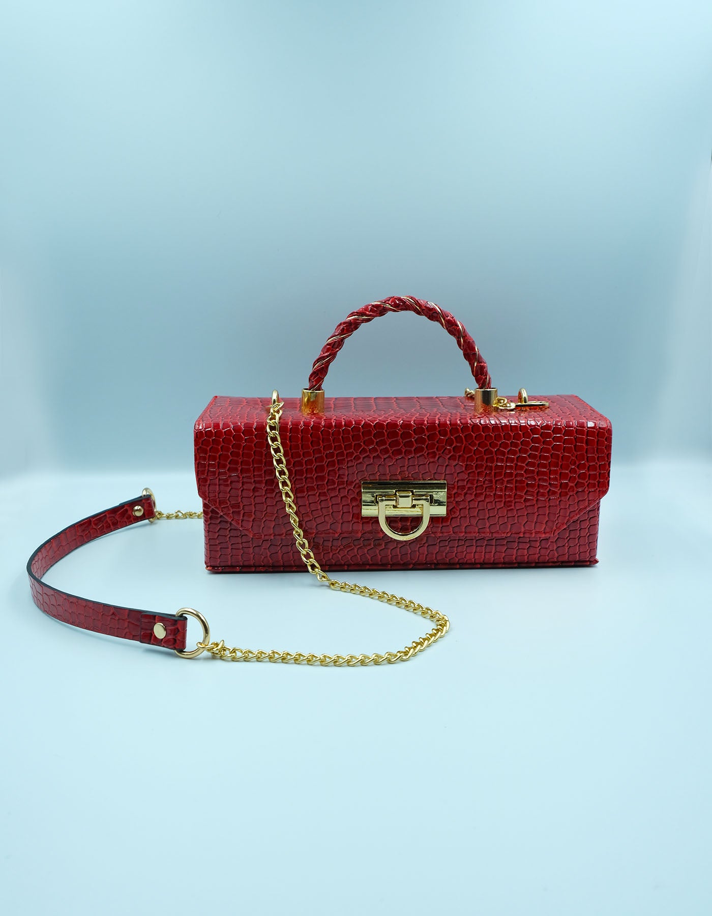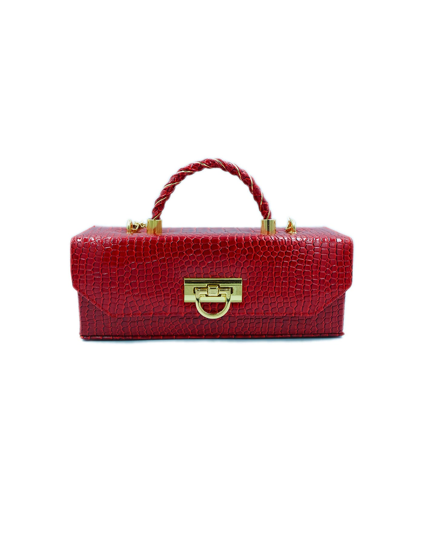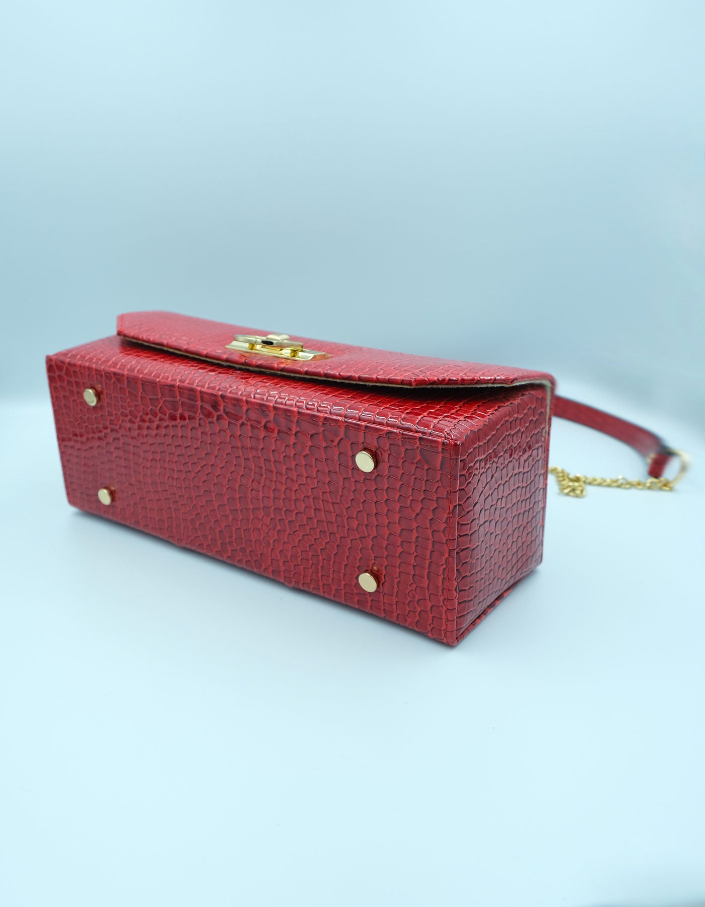 KIRMIZI Krokodil Baskılı Kutu Çanta