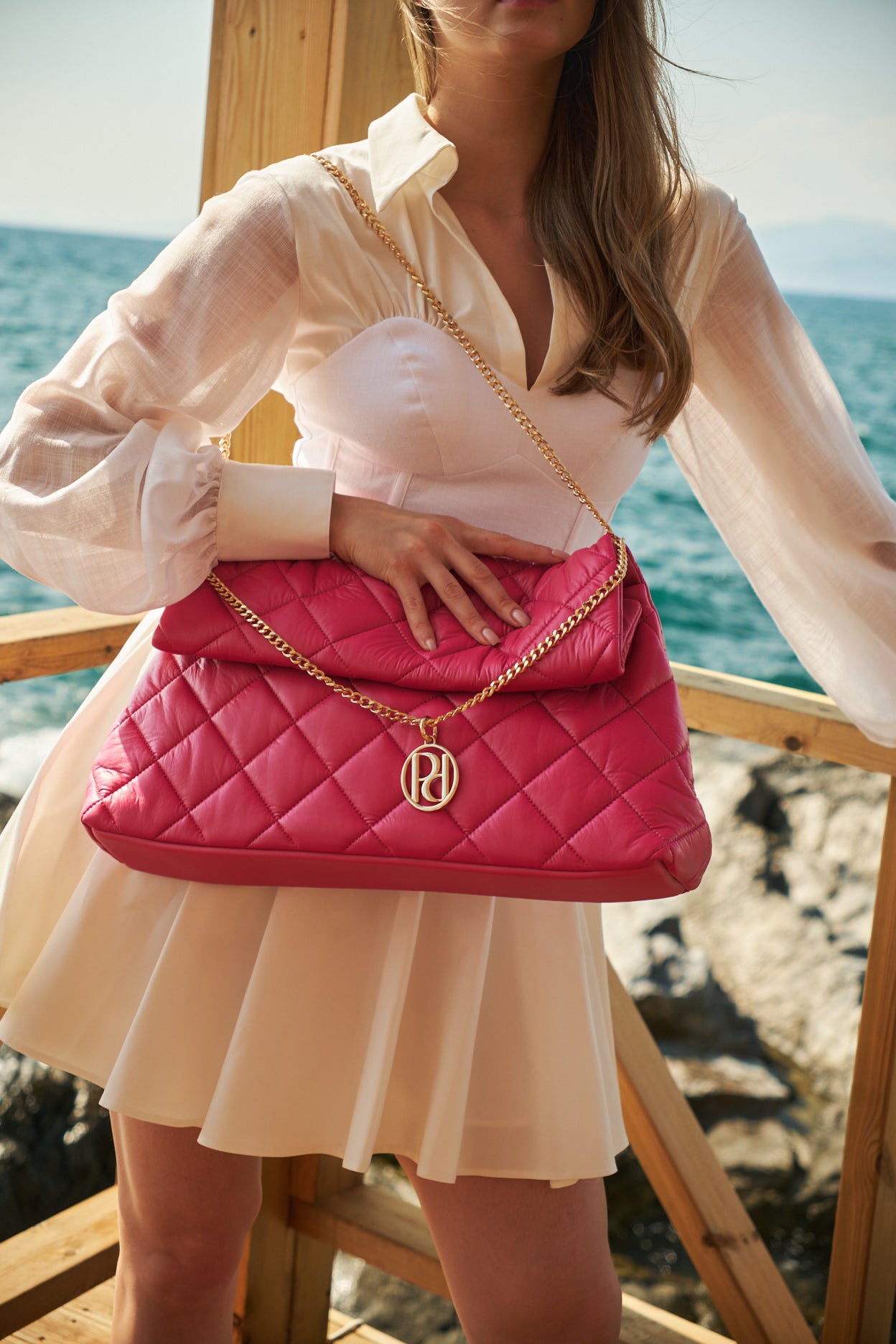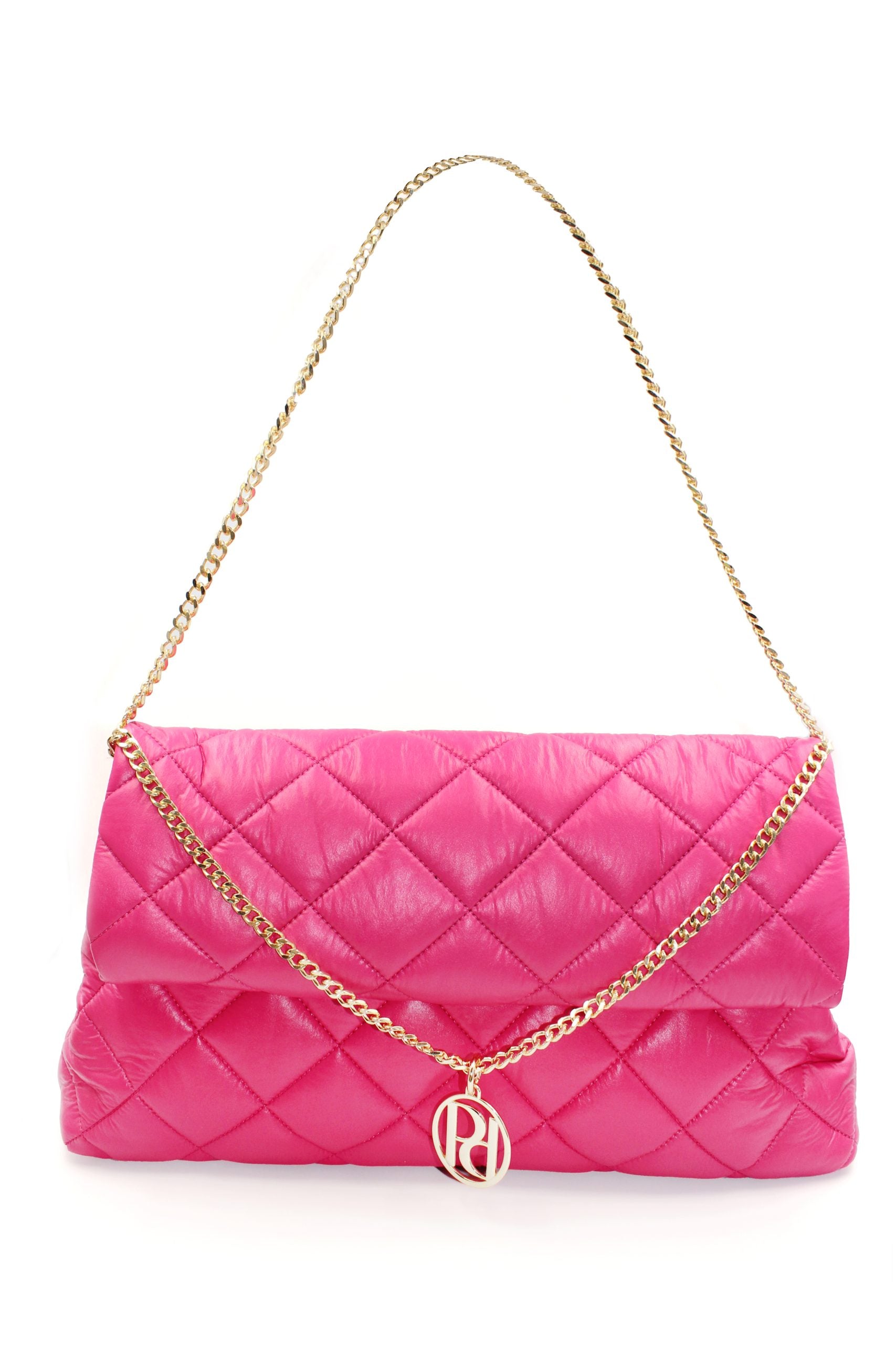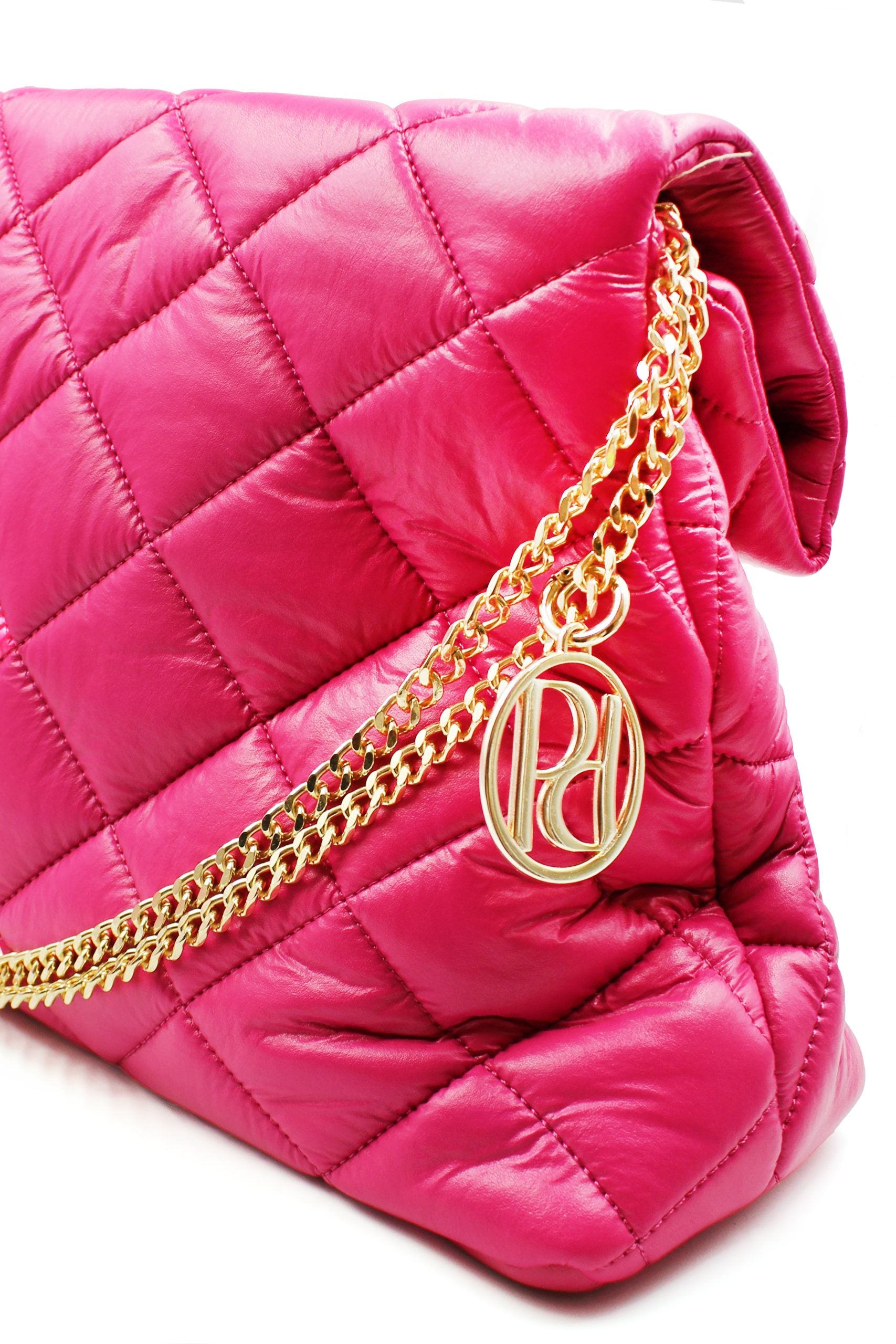 İddalı Fuşya renginde büyük yumuşak  kapitone detaylı omuz çantası. Ayarlınılabilir omuz askısı mevcuttur. Deri görünümlü, yumuşak elyaflı kumaştan yapılmıştır. Hem günlük kullanıma hem de özel günlerdeki kombinlere uyum sağlamak için tasarlandı. İşlevsel ayarlanabilir askısı sayesinde çapraz ve omuz askılı olarak kullanılabilir.