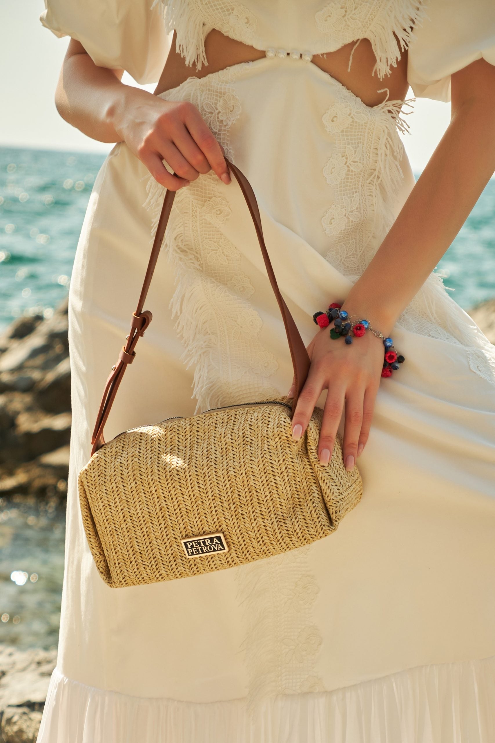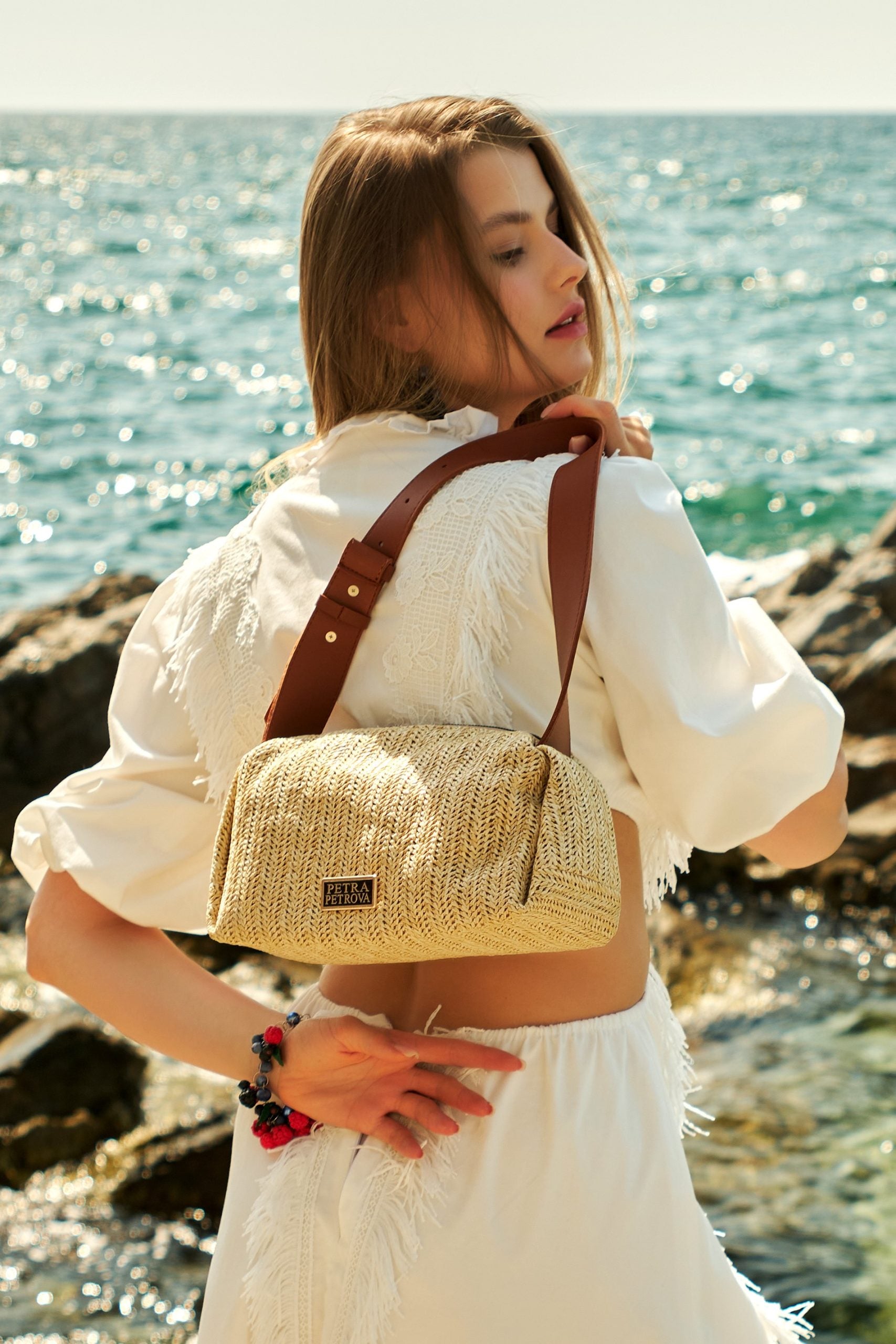 Hasır vegan deri kahverengi sapıyla çantamız , yaz günlerinde stilinize doğal ve şık bir dokunuş katar. Hasır materyalle öne çıkan bu omuz çantası hem günlük kullanım için hem de yaz davetleri için kullanıma uygundur.