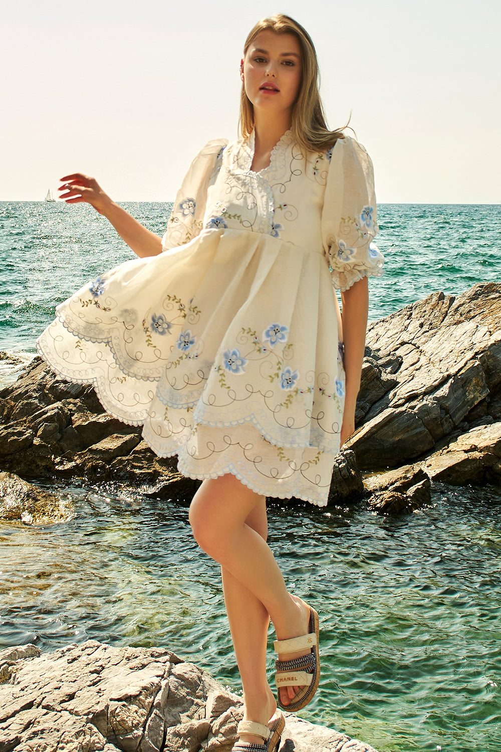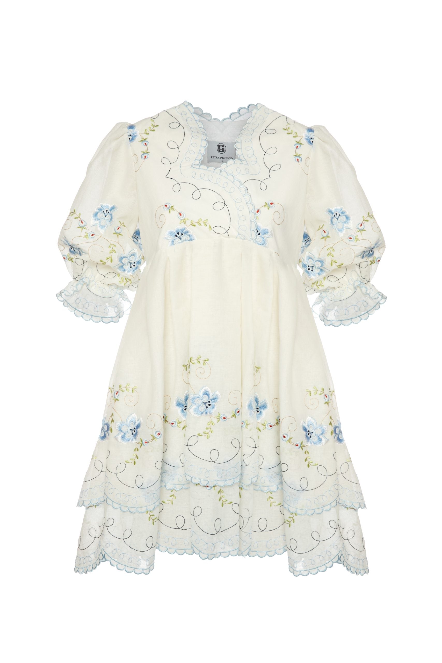 Mavi Çiçek Nakışlı Elbise Sindy
