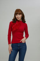 Kırmızı Otrişli Balıkçı Yaka Triko Kris