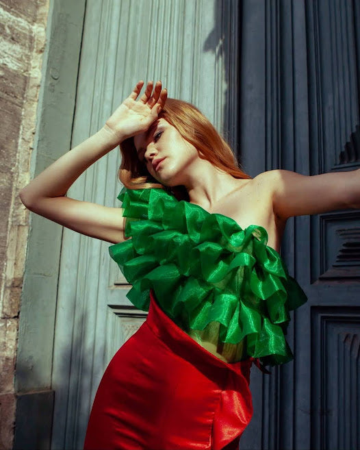 Yeşil Tek Omuzlu Fırfırlı Blüz Selena
