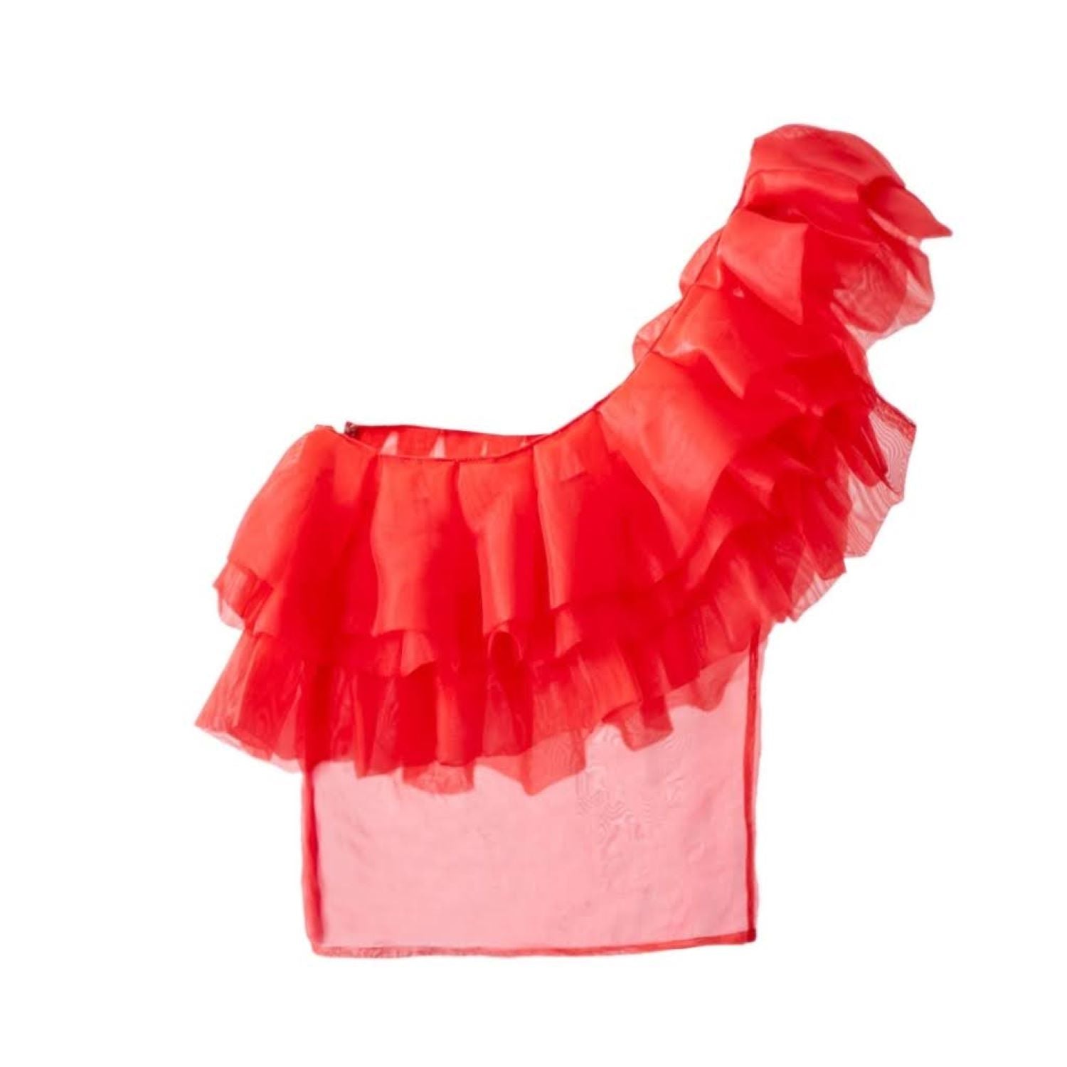Kırmızı Tek Omuzlu Fırfırlı Blüz Selena