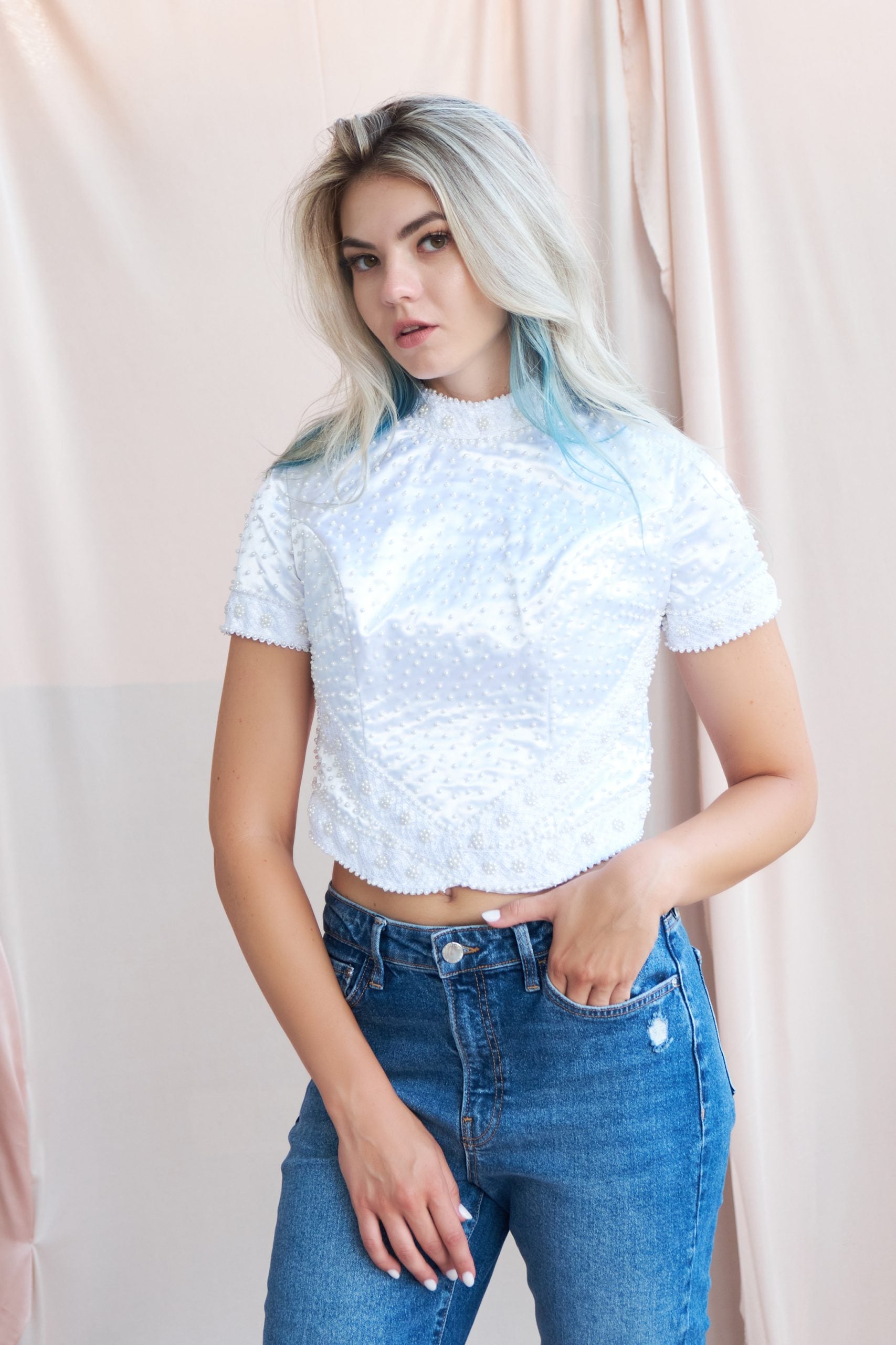 GLENDA Beyaz Otrişli Crop Büstiyer