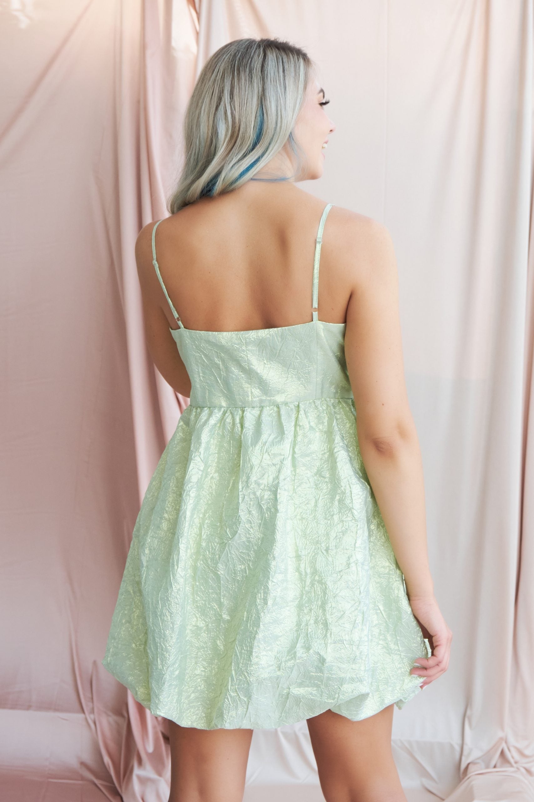 Bu elbise sınırlı sayıda üretilmiştir. Yeşil işlemeli fiyonk detaylı balon mini elbise. Ayarlanabilir askılı. Astarlıdır. Likralı büzgü tafta kumaşından üretilmiştir. Şıklık ve rahatlığı bir arada sunan bu trend elbise , gardırobunuzun favorisi olmaya hazır.