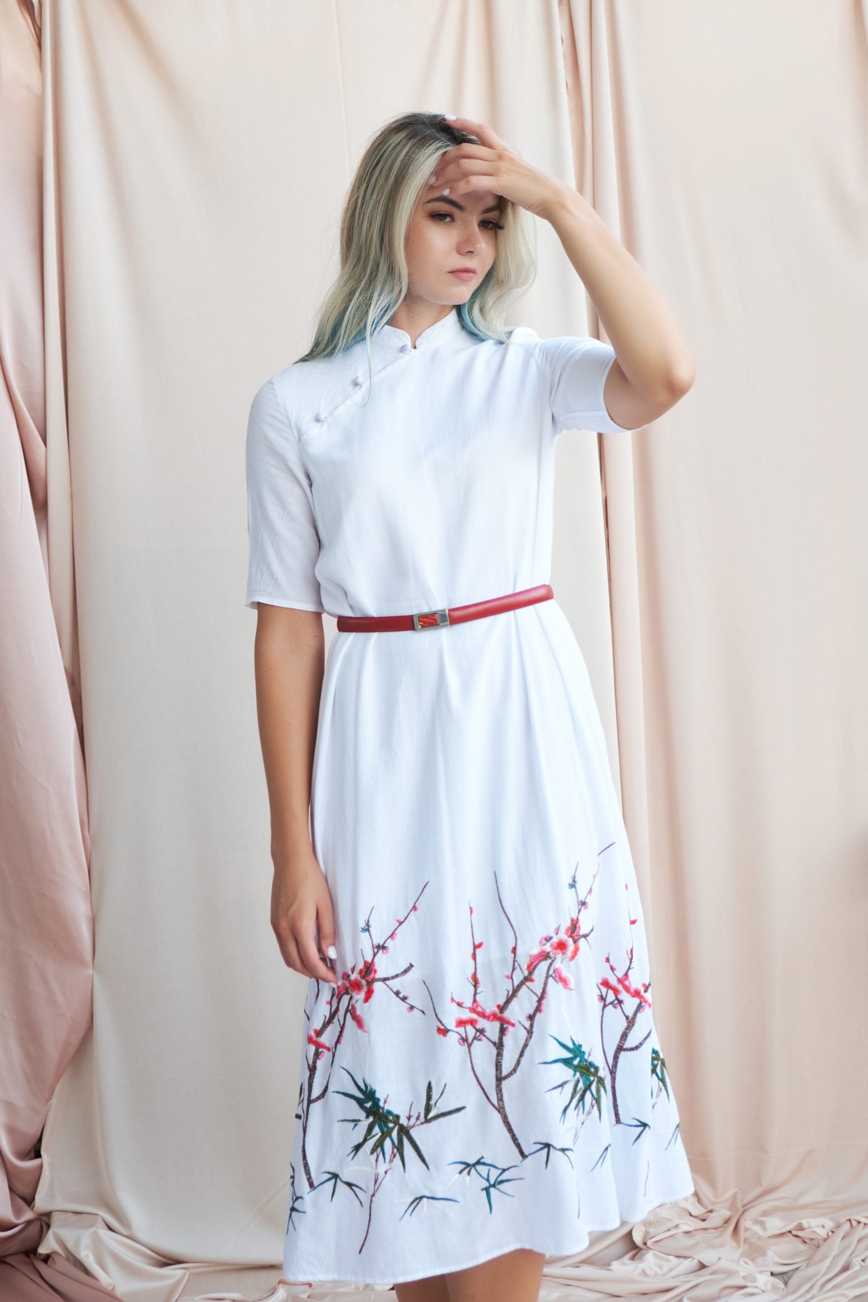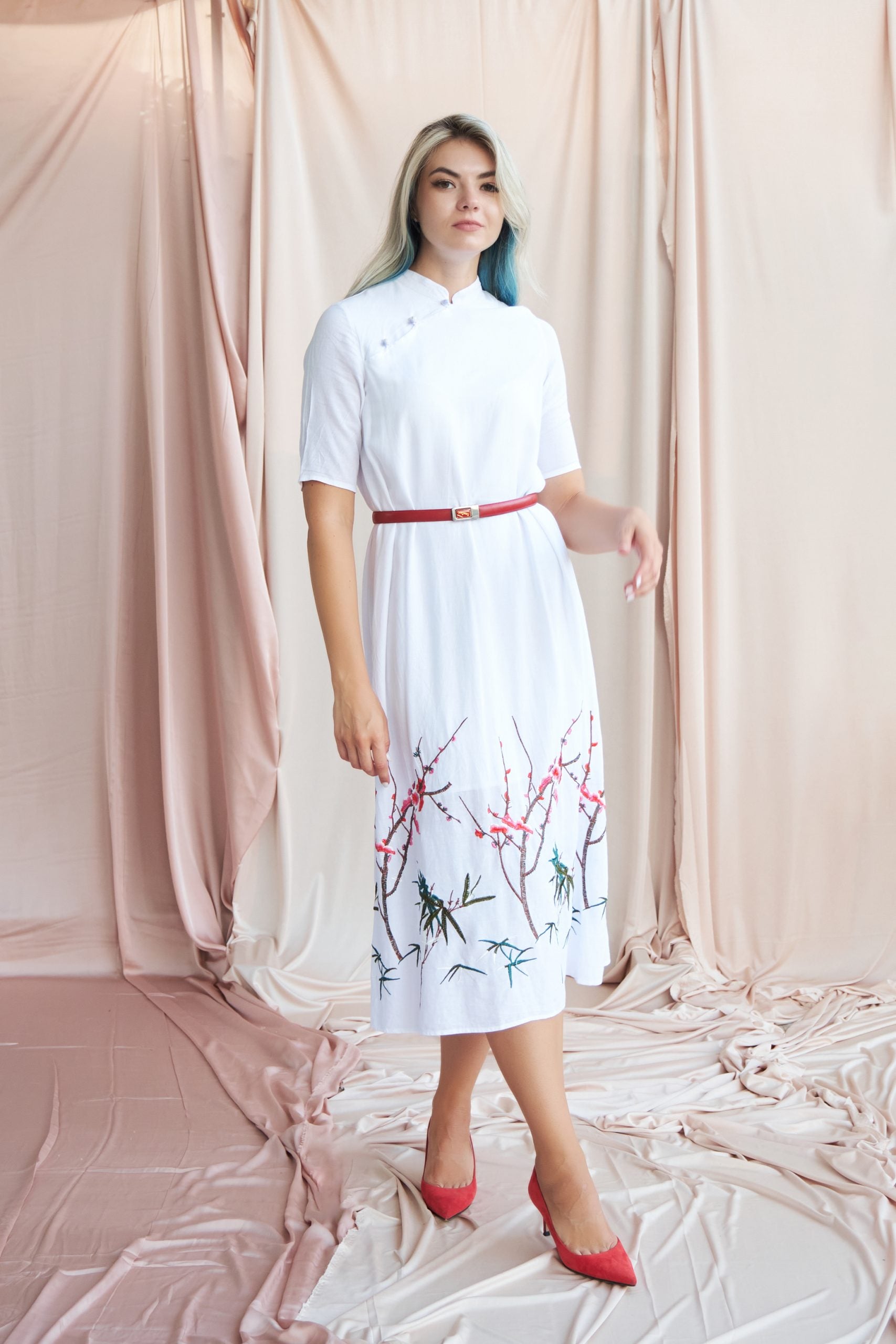Asya kültüründen ilham alınarak tasarlanan Sakura nakışlı uzun 100 % pamuklu elbise. Düz kesim , likrasız ve astarlıdır . Bu ürün kemersiz olarak satılmaktadır. Günlük şıklığınızı bir üst seviyeye taşımak ya da özel anlarda zarif bir iz bırakmak için ideal.