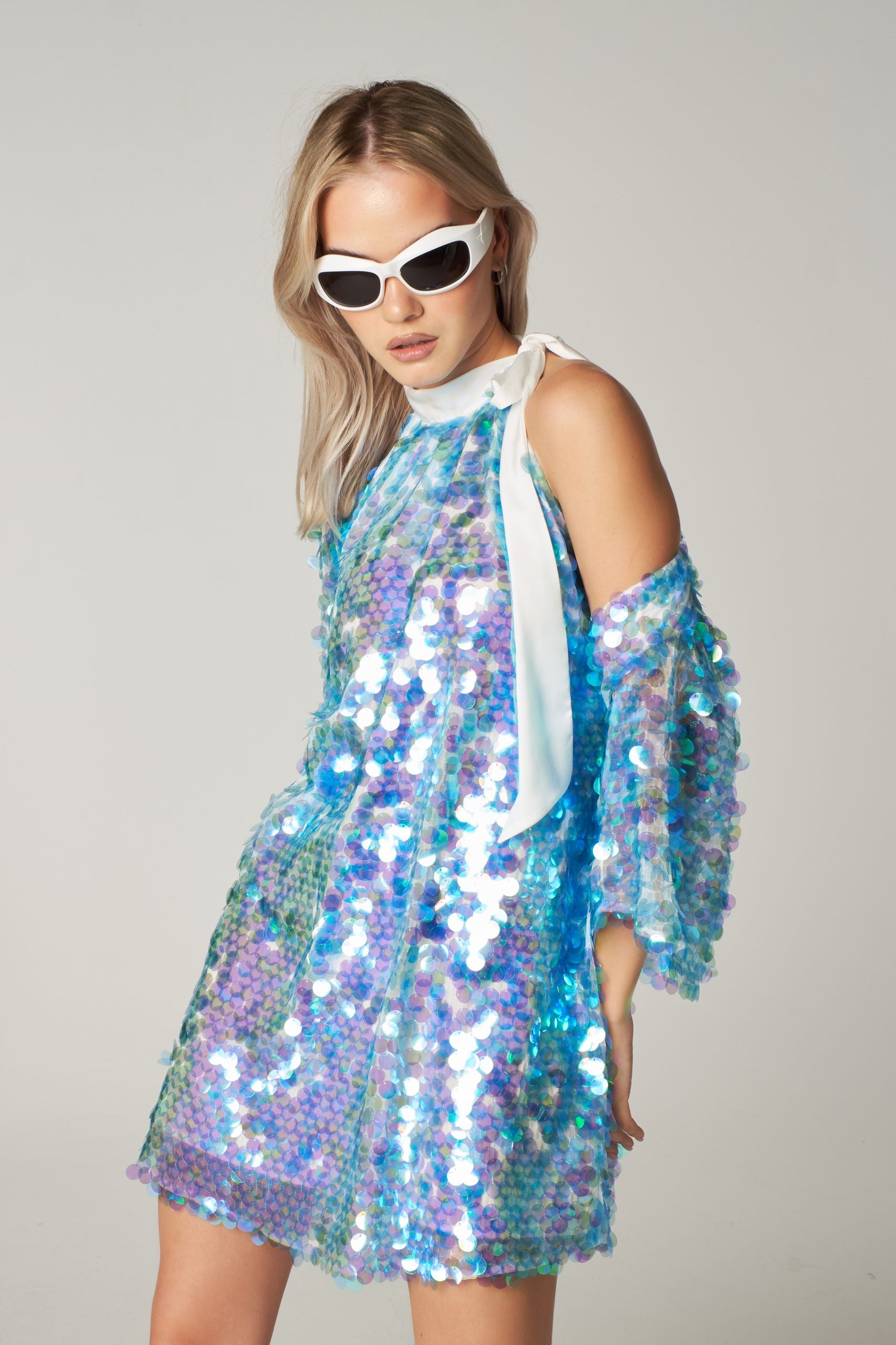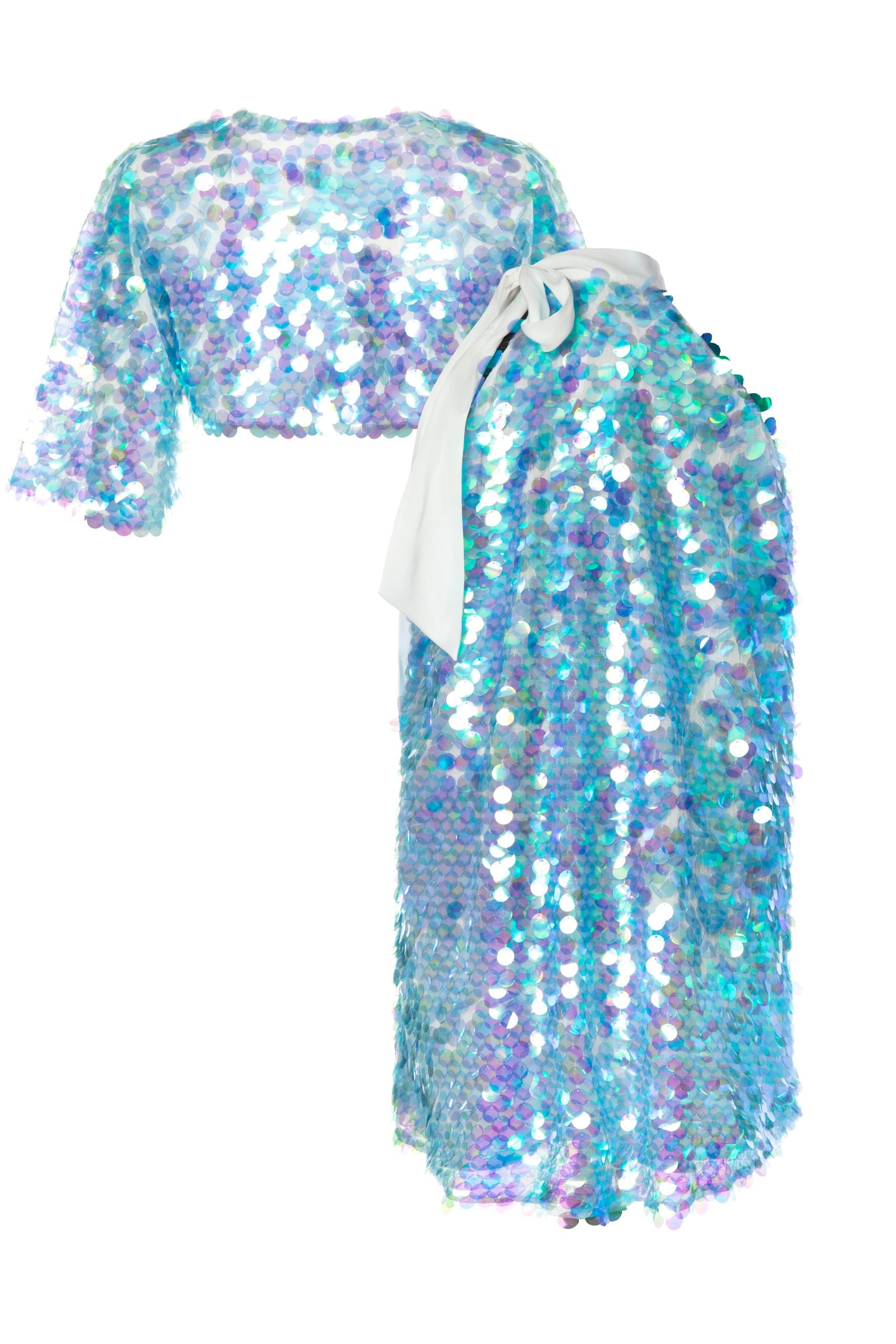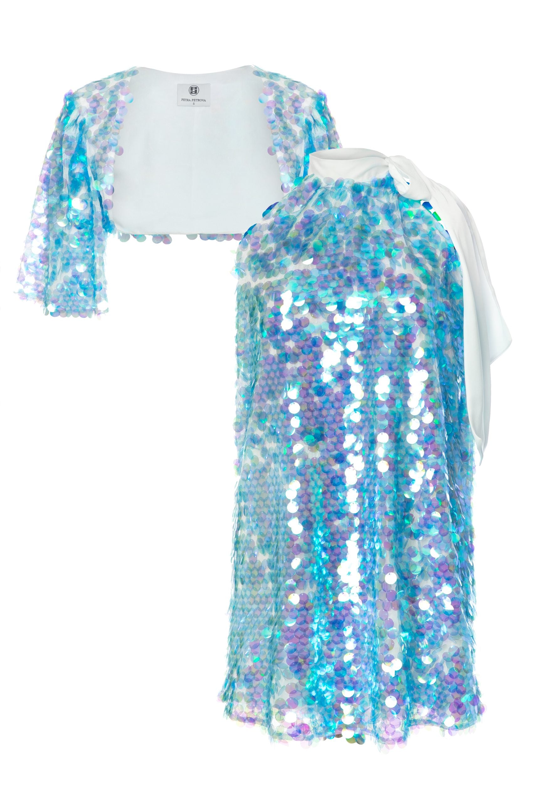 Payetli Elbise ve Bolero Takım Alexis Buz Mavisi