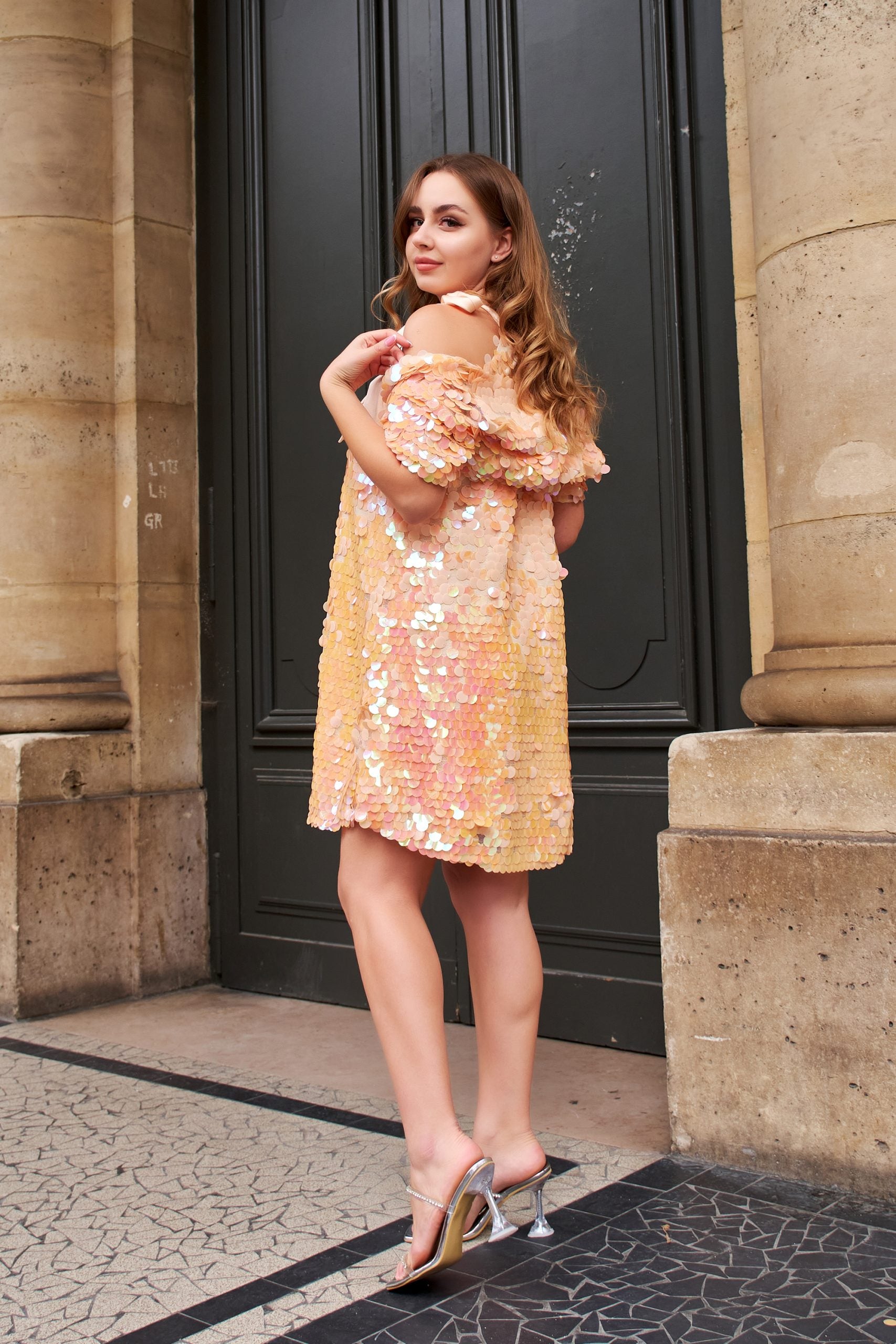 Şeftali Payetli Elbise ve Bolero Takım Alexis