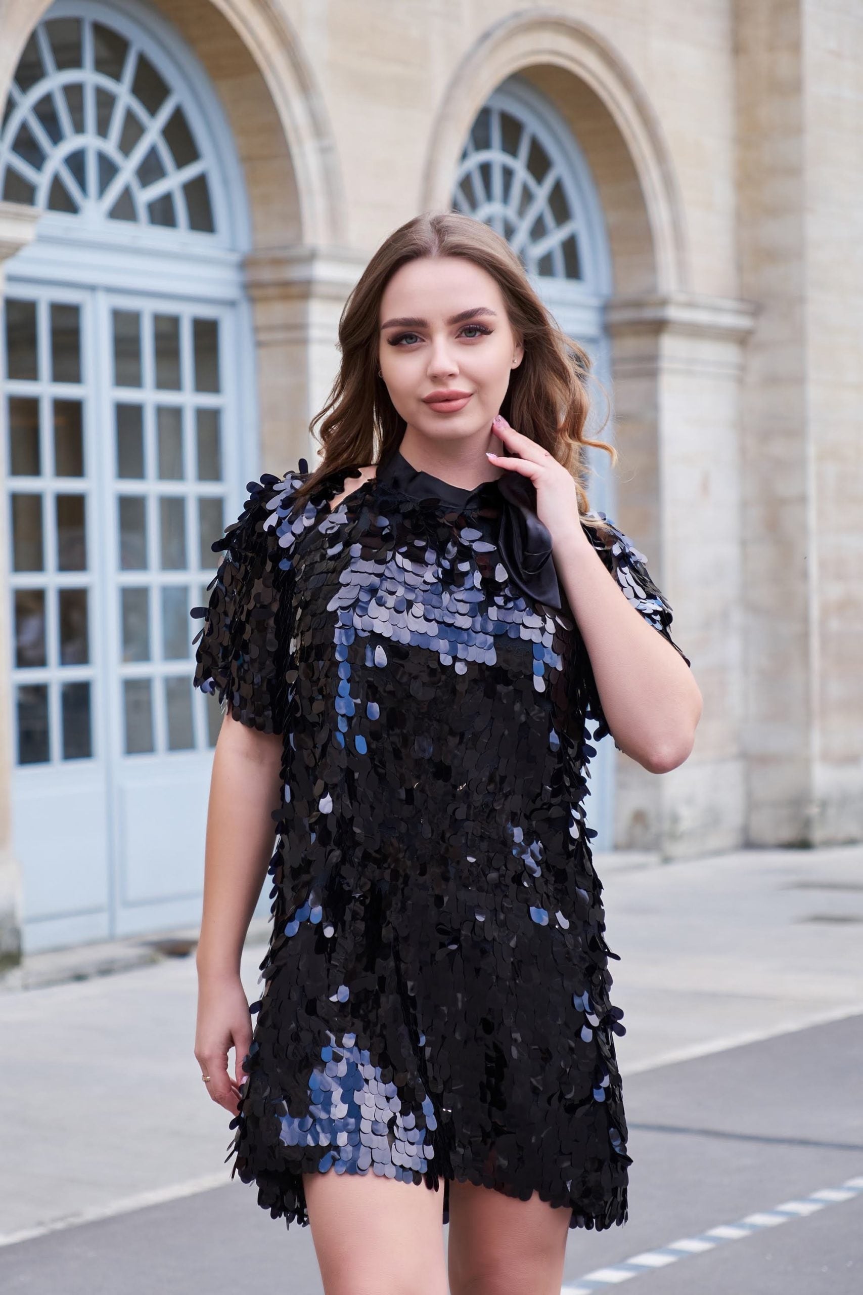 Göz alıcı payetli kumaştan üretilen mini elbisemizle zarif ve sofistike bir görünüm sunar. Boyundan kurdele ile bağlanması , rahat A- kesim oluşu  ile kusursuz şıklık ile rahatlığı aynı anda hissedeceksiniz . Garderobunuzda bulunması gereken o rahat ama aynı zamanda şık kurtarıcı elbise . Sezon ne olur olsun kullanabileceğiniz muhteşem bir elbise. İster bolero ile birlikte takım olarak isterseniz de ayrı ayrı kombinleyerek kullanabilirsiniz