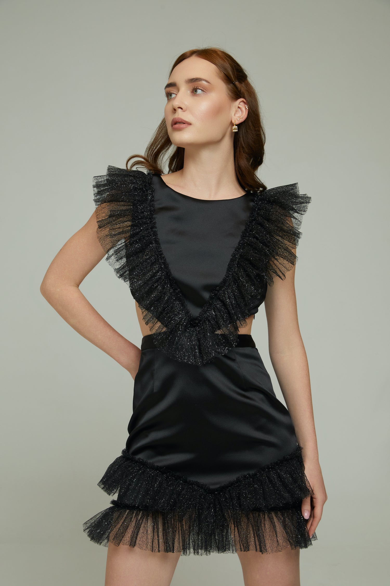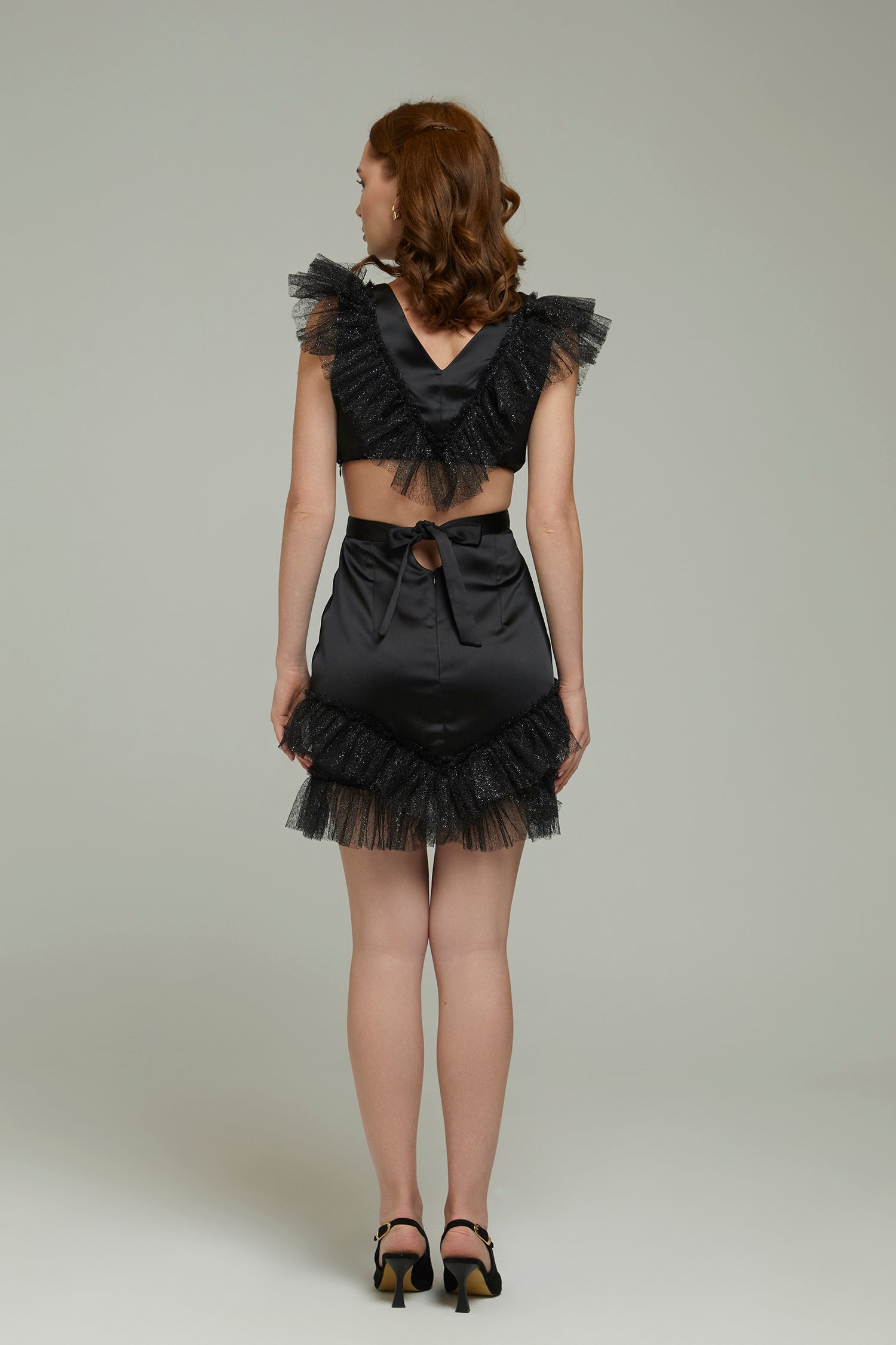 Önde ve arkada yumuşak dokuda fırfır detayları ile öne çıkan siyah mini elbise, şıklığınıza sofistike bir dokunuş katar.Eteğinin belinde arkada istenilen konforda bağlanabilen kemeri ve elbisenin üst tarafında ince gizli lastik olması ve gizli fermuar ile kapanabilmesi elbiseye ayrı konfor sağıyor . Belde Fit oturan , likrasız ve astarlıdır. Sınırlı Sayıda üretilir Not : Sipariş oluşturduktan 3 iş günü içerisinde üretilir ve kargoya verilir .
