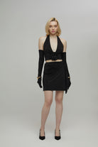 Siyah Taşlı Drapeli Etek
