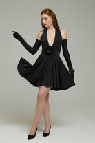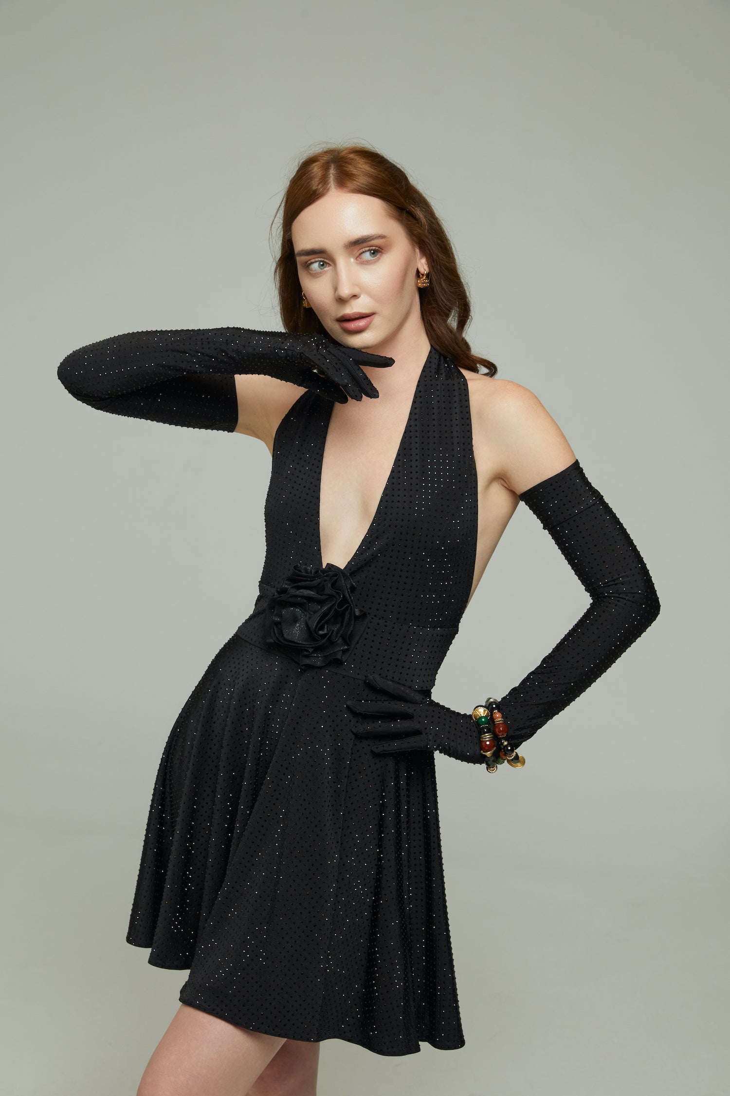 Boyundan Geçmeli taşlı kloş elbise modelimiz derin V dekoltesi ve büyük çiçeği ile dikkat çekiyor . Elbisemizin arka belinde likra biritli ve düğmeli ,eteğinde ise gizli fermuarlı olması da elbiseye ekstra komfor sağlıyor .Ürün liktali ve Astarlıdır . Elbise Eldivensiz olarak satılır . Aynı serinin siyah veya kırmızı renk eldivenleri ile takım olarak kombinleyerek tarzınızı bir üst seviyeye çıkartabilirsiniz.