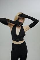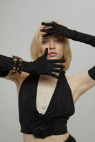 Her moda tutkunu garderobunda olmazsa olmazı: tasarım uzun siyah Eldivenler. Likralı yapısı ile fit oturan ve özellikle parmaklarda estetik duruşa önem veren moda tutkunları için özen ile üretilmiştir . İster aynı serinin Crop Blüzü veya elbisesi ile takım olarak veya basic bayaz bir kombin ile siyah renkeldiven erkelerek ters köşe yapabilecek moda tutkunları için tasarlanmıştır.