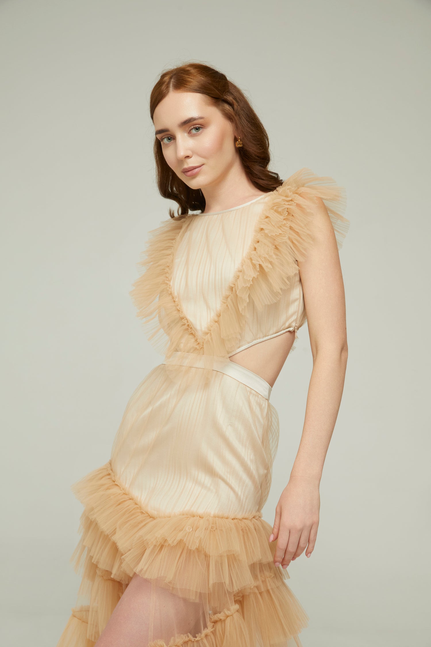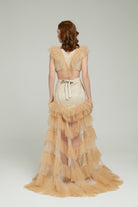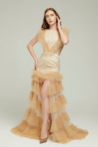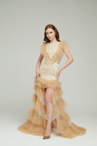 Bej Fırfırlı Abiye Jeniss