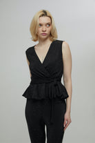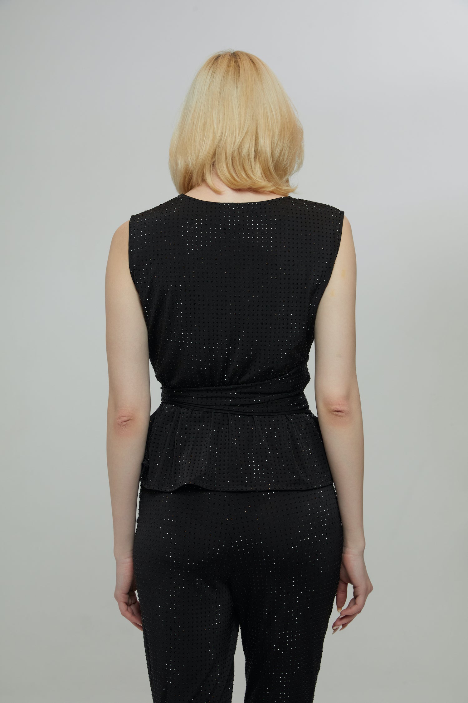 Şık gece ve davetler için ideal bir seçimdir . Siyah yüksek bel likralı İspanyol paça pantolonumuz esnek kumaşı ile vücuda oturan kalıbı sayesinde zarif siluetinizi vurgularken konforlu bir kullanım sağlarar . Pantolon ışıldayan taşları ile tek adımda iddialı bir stil yaratır.Beli lastikli ve kolay kullanışlıdır .Anvelop kesim taş detaylı bluzümüz kesimiyle siluetinizi kusursuzca vurgular. Belinde bulunan kuşağın altında ise gizli likralı lastiği blüzünüze komforu sağlar . Yanında gizli fermuar detayı ile rahat kullanış için özenle üretilmiştir . Likralıdır .Klasik ve zamansız bir duruş sergileyin .