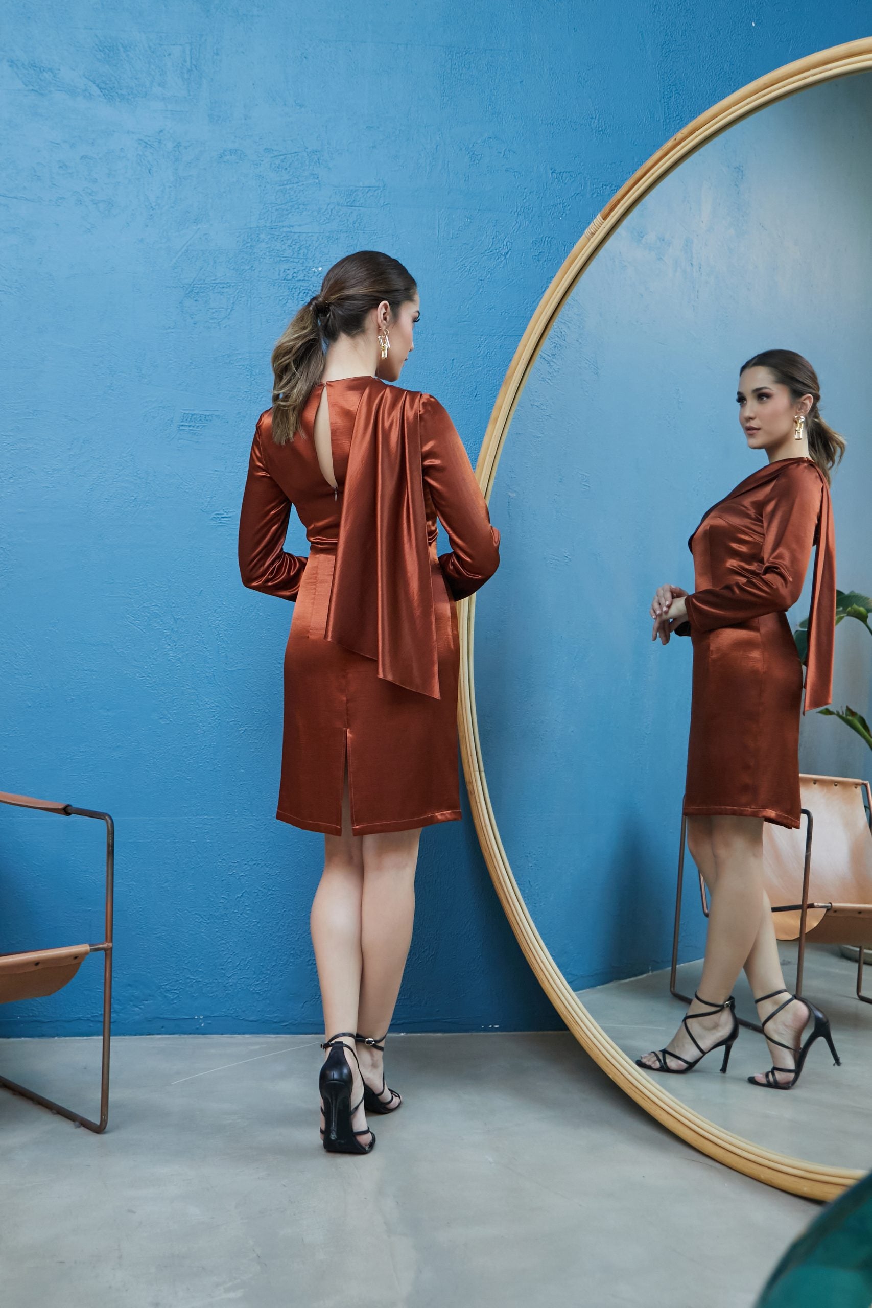 Bu elbise, zamansız klasik duruşunu göz alıcı detaylarla yeniden yorumluyor. Yakada tek taraflı asimetrik drape, zarif bir hareket katarken, sırt kısmındaki damla kesim dekolte ayrı feminenlik katıyor. Bu ürün likrasız İpek-viskon karışımlı İtalyan Kumaştan üretilmiş olup , üst tarafı vucuda tam oturan , A-kesim eteğinde ise arkada yırtmaç detayı hareket etmeye daha da kolaylaştıran şık ve fonksiyonel yapıya sahiptir .
