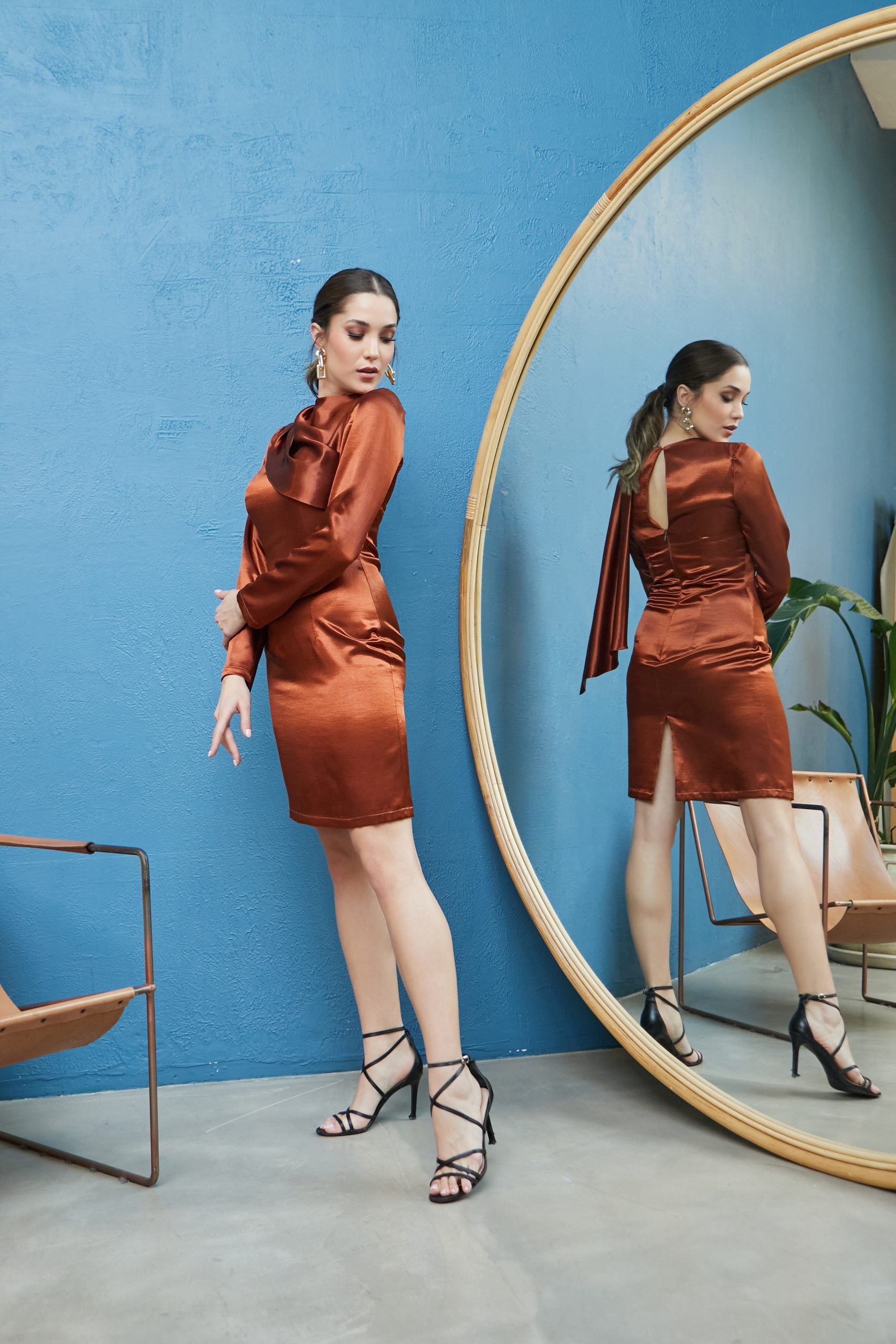 Bronz Kahve kısa Elbise Lina